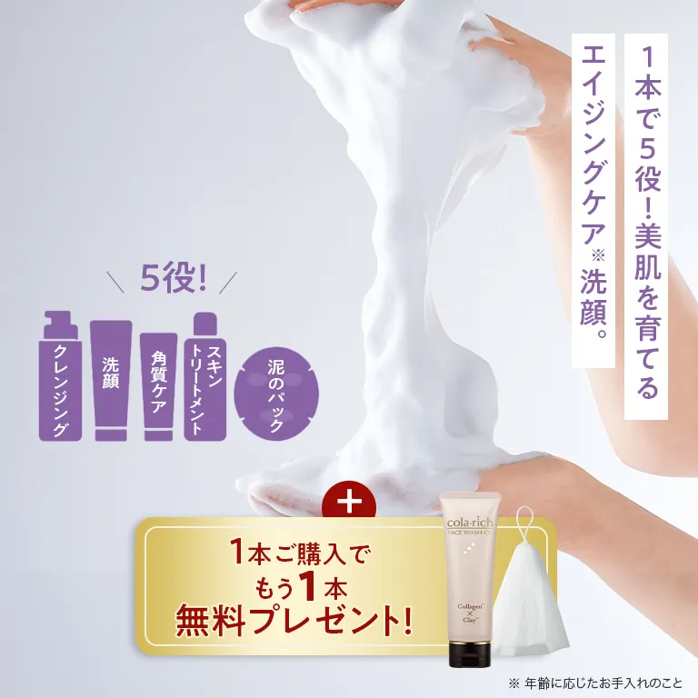コラリッチのコラーゲン※1配合美容液洗顔なら、1本で「洗顔・クレンジング・泥のパック・角質ケア・スキントリートメント」の5つの機能を実現。