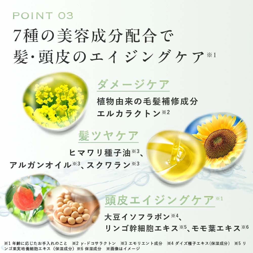 厳選された7種の美容成分で 髪・頭皮のエイジングケア※1を