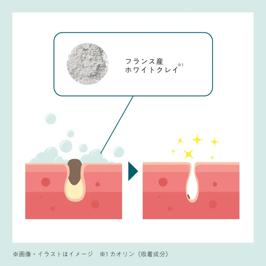 ※2 カオリン(吸着成分)、ビルベリー果実エキス、レモン果実エキス、オレンジ果実エキス、サトウカエデエキス、サトウキビエキス(すべて保湿成分)、ココイル加水分解コラーゲンK(洗浄成分)