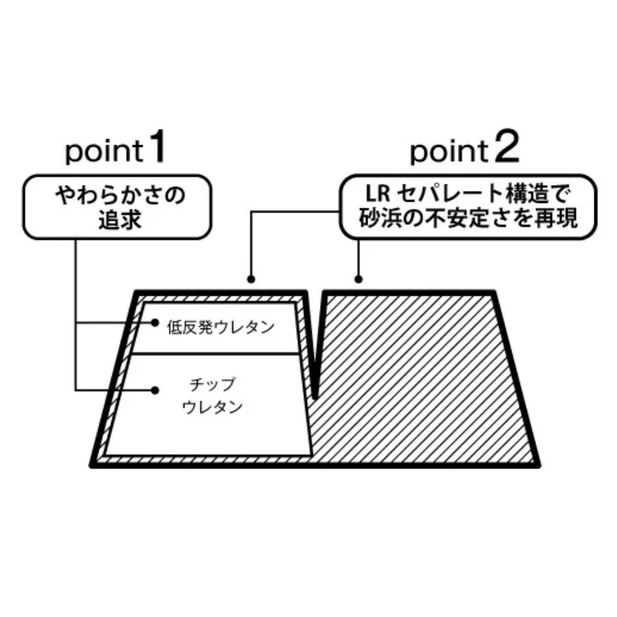 砂の上を歩く触感を再現するため、十数パターンの試作を重ね、最適な構造を追求しました。